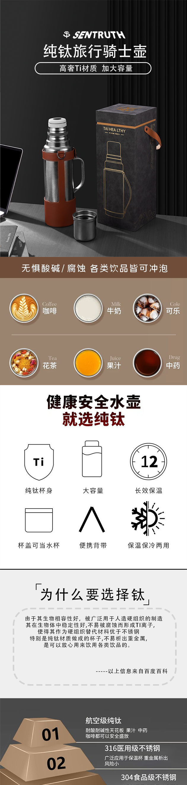 纯钛骑士壶1200ML